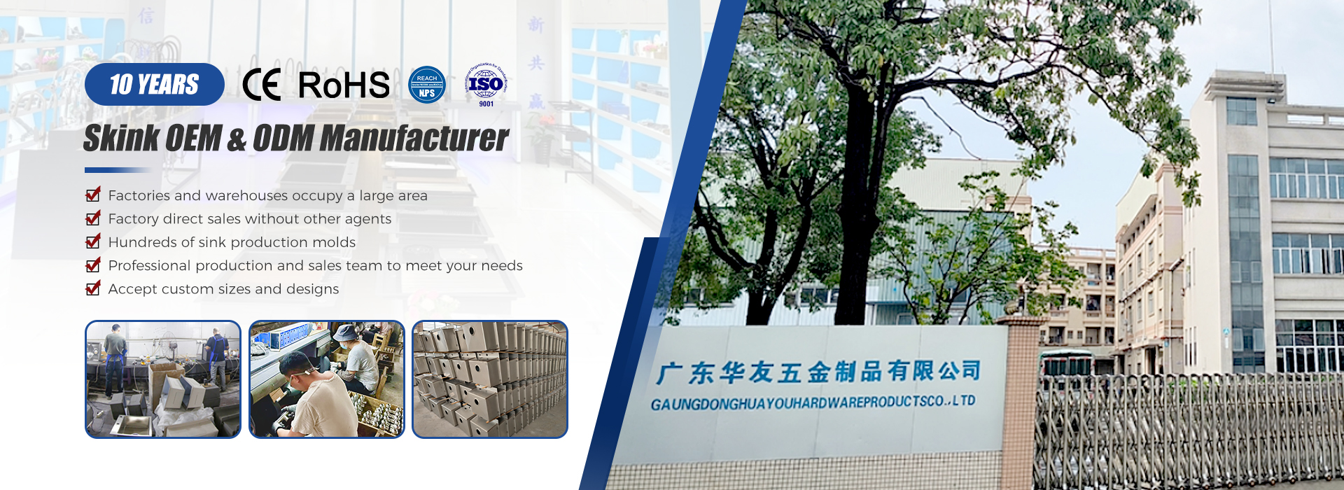 Guangdong Huayou Hardware Products Co., Ltd is a premier manufacturer specializing in high-quality handmade stainless steel sinks. Huayou Gudsink is excellence in Craftsmanship and Service, keep steadfast commitment to efficient production and customer satisfaction. With spanning over 7,000 square meters and staffed by a skilled workforce of 100 professionals and boasting a monthly production capacity of 30,000 sinks,we are established ourselves as a trusted partner for clients who prioritize durability, aesthetics, and superior performance in kitchen sinks OEM/ODM section.